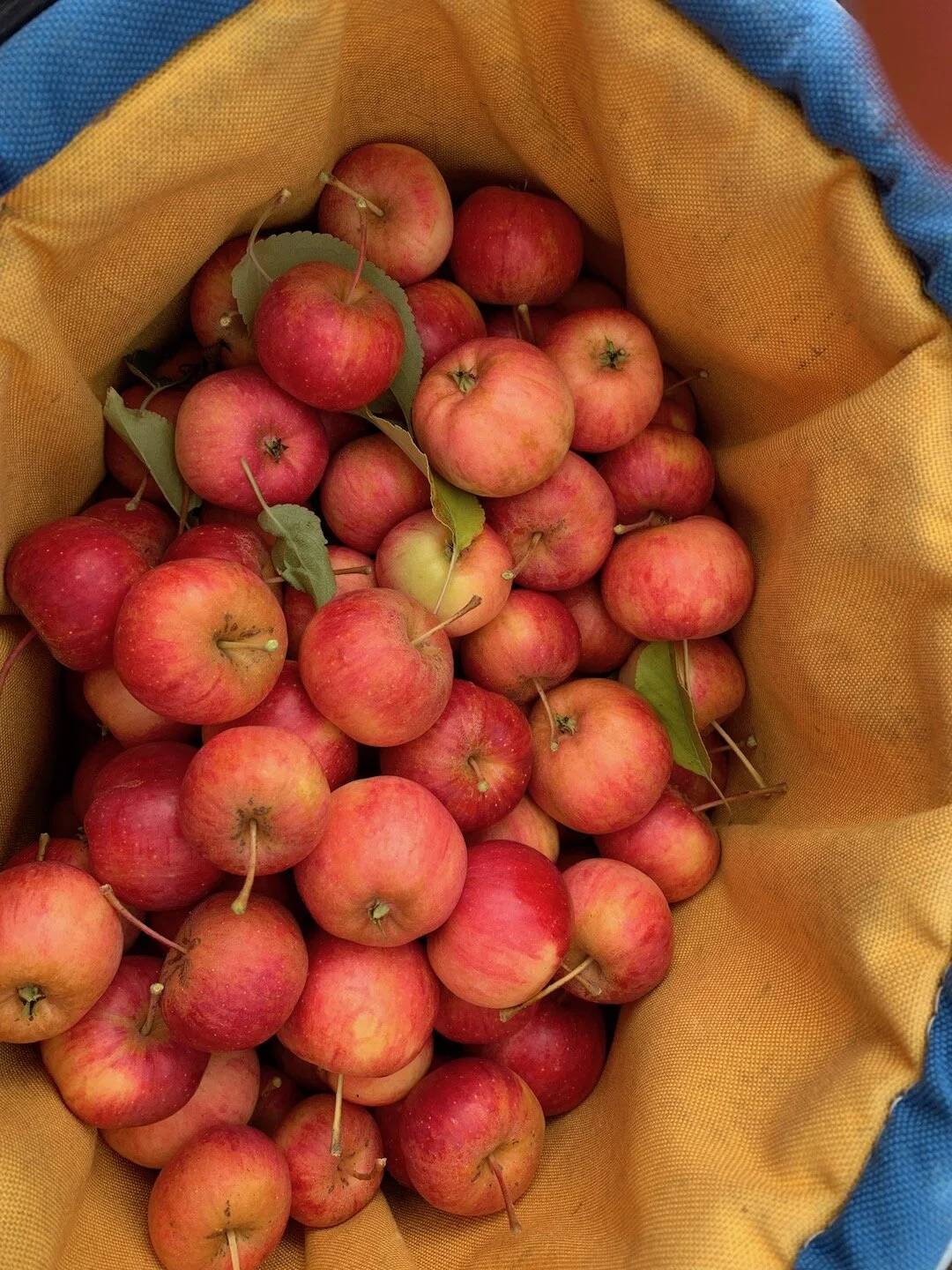 For those of you new to the CSA who have always considered crab apples as something to be avoided, we have two surprises for you: Chestnut Crab and Martha Crab. The moniker “crab” refers to the size of the fruit (2” or less) and not to the puckery face you get when you eat a bitter apple. Just like those small dogs that have a large bark, Chestnut and Martha pack all their flavor into two bites to make you sit up and take notice. We hope these two little flavor bombs will forever change your mind about small apples. If you don’t like them fresh, you can always use them for jellies and pickles.