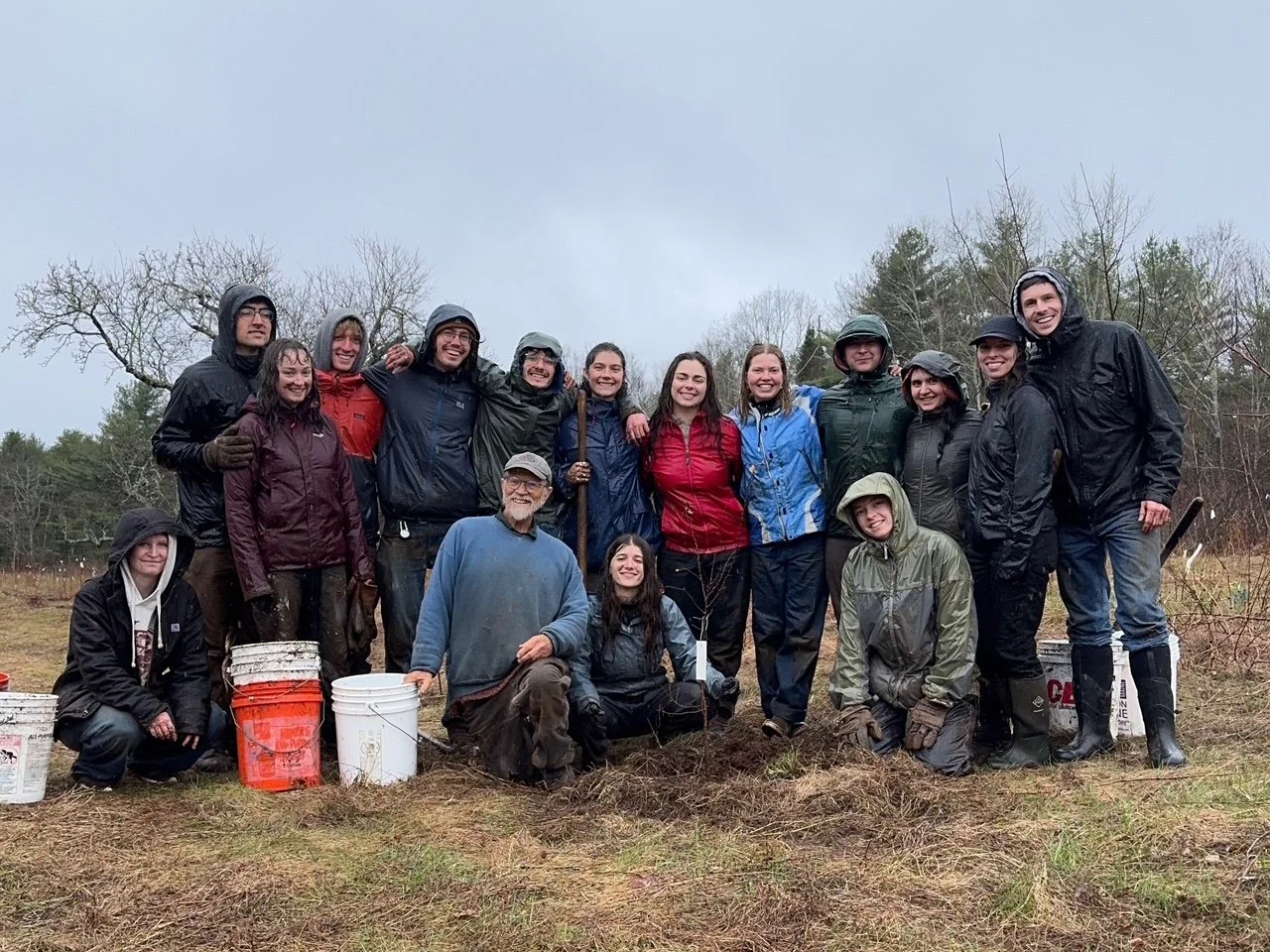 Today was our Spring tree-planting day. It was a fantastic whirlwind of activity, well-lubricated by a whole lot of rain. Skylar, Evacilie and a bunch of their friends from COA arrived yesterday evening and celebrated up in the orchard with a fire, food and Super Chilly Farm cider. This morning Alyssa, Kevin, Todd and I joined them. After the traditional pre-planting Super Chilly breakfast of (what else?) oatmeal and applesauce, we went to work. It was a major team effort all the way. By noon we had planted 34 trees, a quarter of which are grafted selections we’re excited to trial over the coming years. The rest are seedlings grown from some of our favorite “mothers.” All of them are two-year-olds from our nursery: the apples of the future.