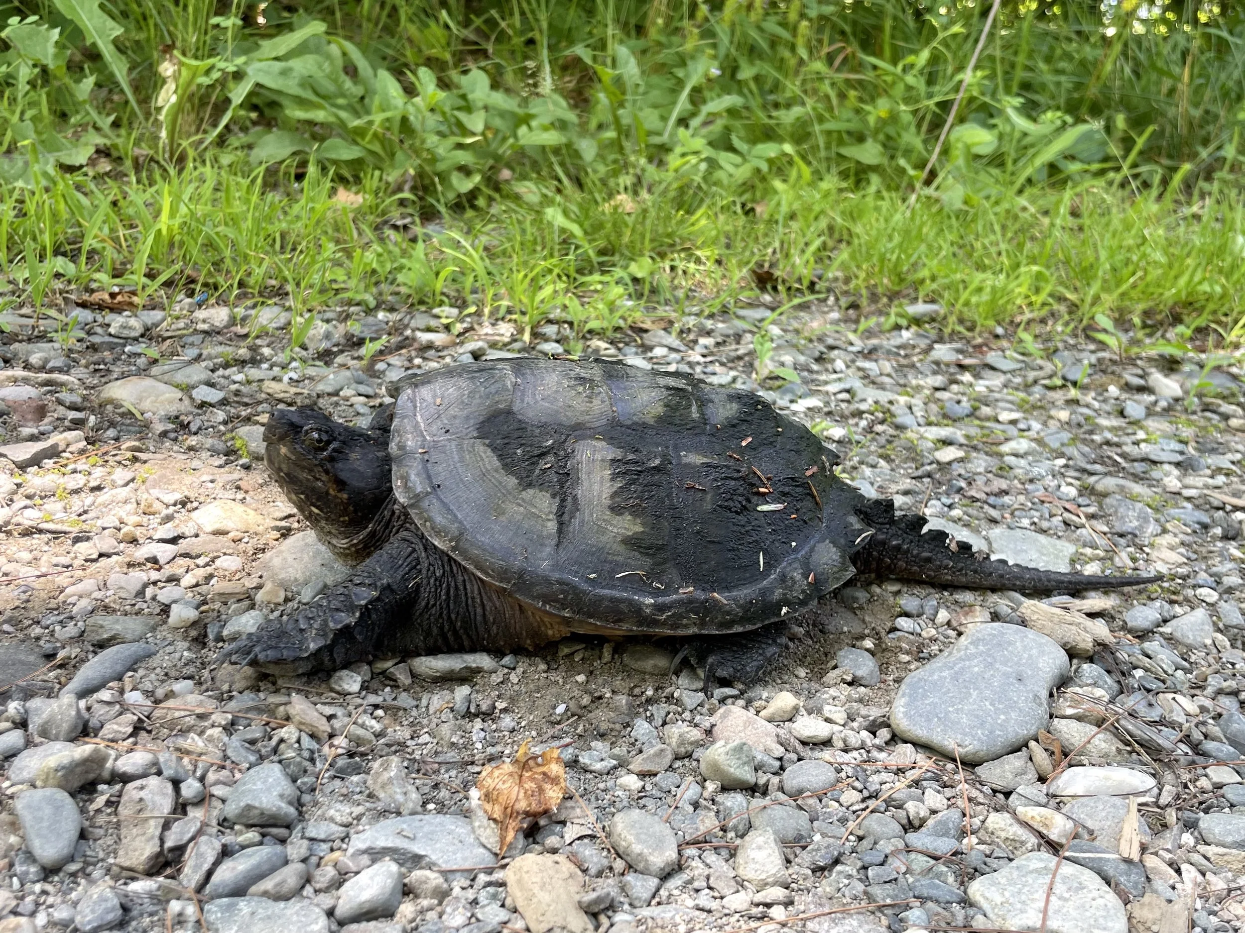 Common Snapping Turtle (Chelydra serpentina) hanging out outside the shop, July 13, 2025.