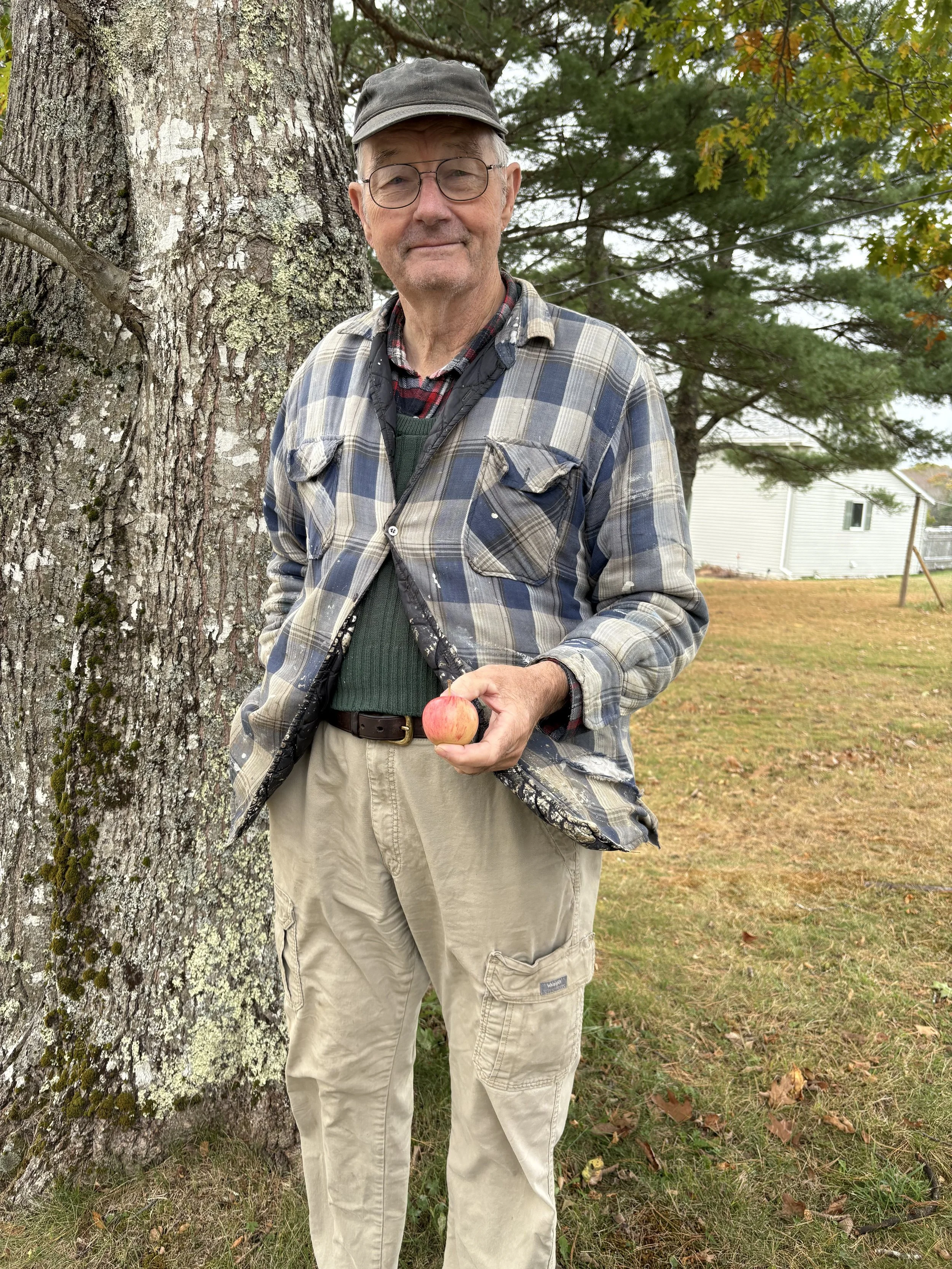 Todd Little-Siebold and I headed “downeast” to the town of Cherryfield in search of the true Cherryfield (aka Collins) apple. We’ve been scheming about such a trip for a couple of years. The DNA profile of the apple tree we thought was Cherryfield matched an old Illinois apple called Salome. We’ve now found this same Salome in multiple Maine locations. The phenotype also appears to be Salome. So most likely we had Cherryfield wrong. Once we got over the disappointment, we decided to go back to square one, and that meant a trip back to Cherryfield to find Larry Brown, the fellow who sent me two apples from a tree he had grafted from a far-older tree—the apple I thought was Cherryfield.